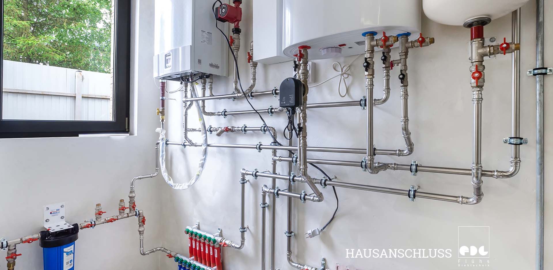 Der Hausanschluss besteht aus der Hausanschlussleitung, dem Netzanschluss, der Hauseinführung und dem Hausanschlusskasten oder der Hauptabsperreinrichtung.