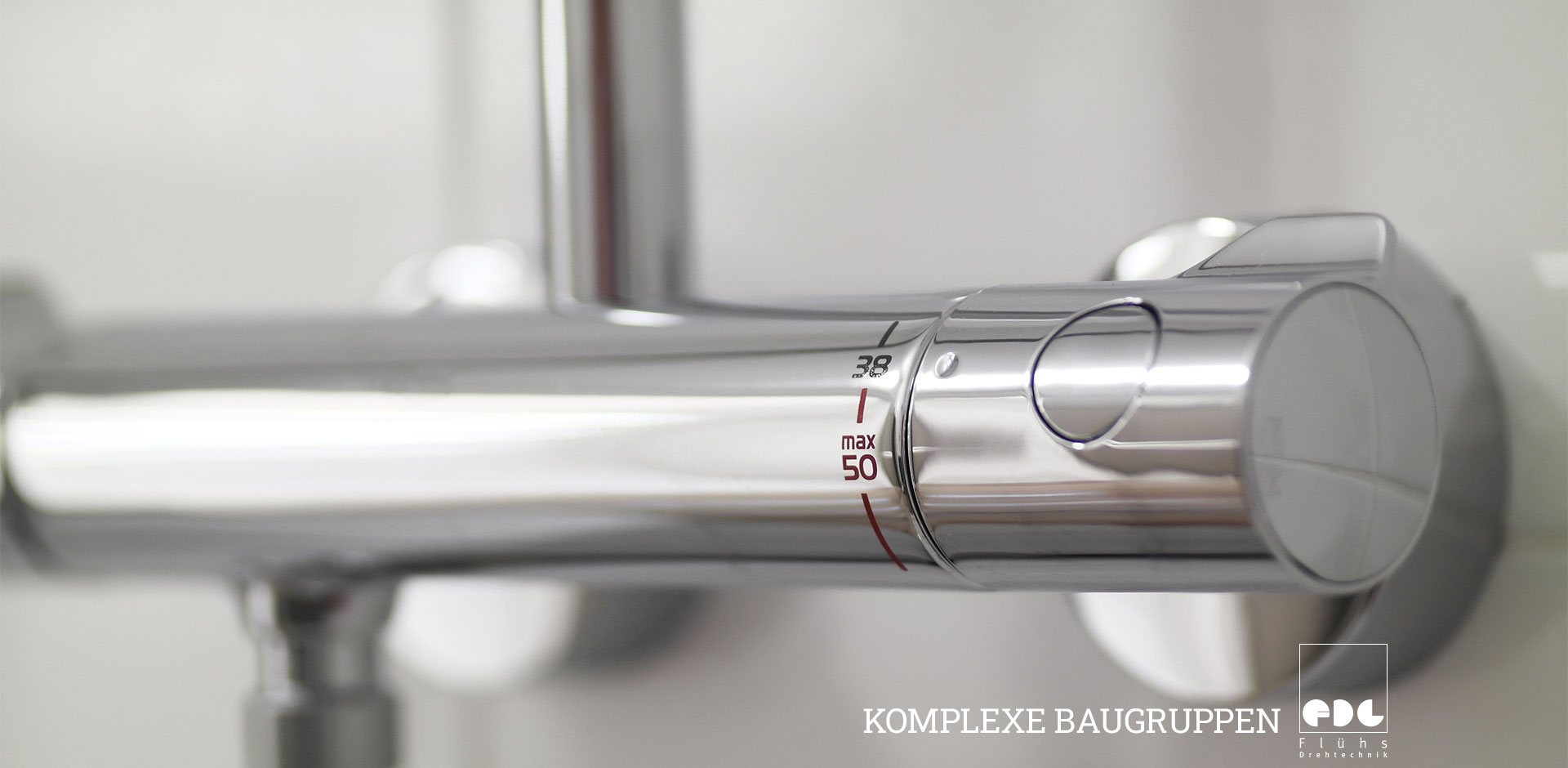 Ein Thermostat mit Umsteller ist eine Funktionseinheit, die eine vordefinierte Temperatur konstant hält und das Wasser auf 2 oder mehr Wege umstellt. Thermostate mit Umsteller werden häufig in Duscharmaturen verwendet. Ein Beispiel für ein Thermostat mit Umsteller ist das TMM S18 von Flühs. Das TMM S18 ist eine Kombination aus einem Flühs Thermostar mit einem Flühs Motion Umsteller. Das Thermostar und das Motion Ventil werden in einem Gehäuse integriert und durch ein Verbindungsstück miteinander verbunden.