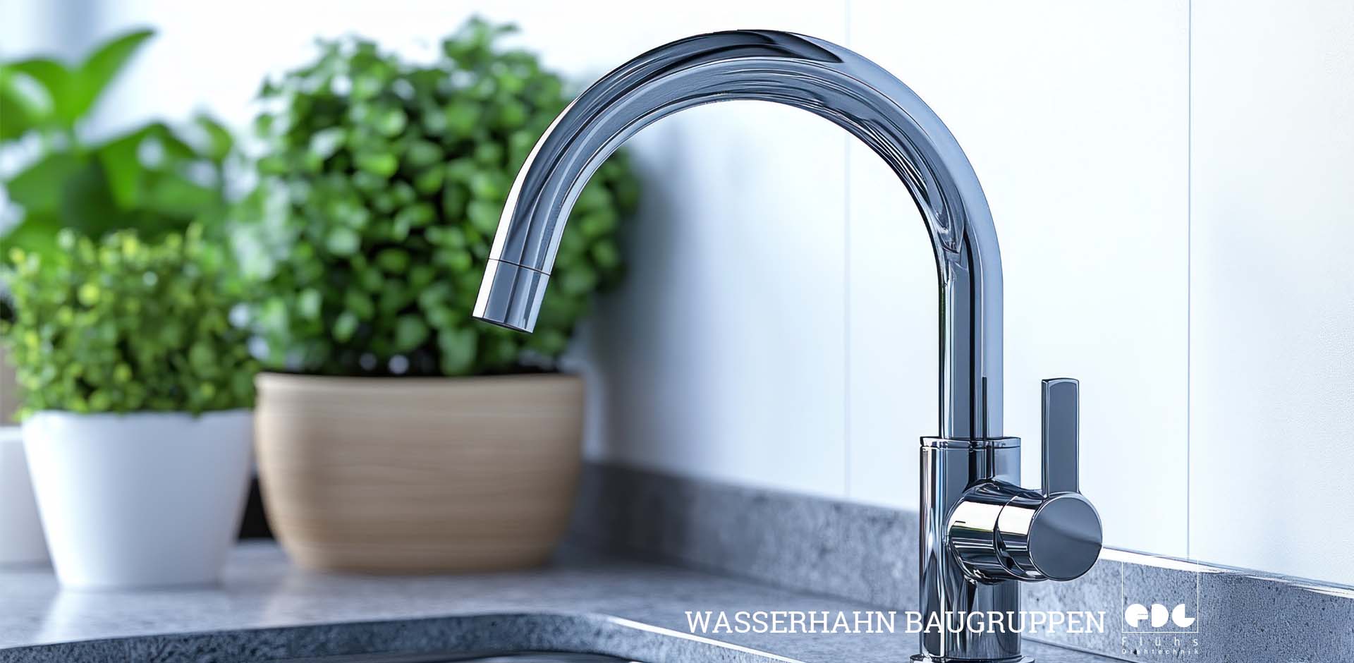 Wasserhahn Baugruppen sind Bauelemente, wie zum Beispiel Wasserhahnkörper, Auslauf, Griffe und Ventile, die sich zu einem Wasserhahn zusammensetzen lassen. Die einzelnen Bauelemente setzen sich ihrerseits aus weiteren Teilen wie zum Beispiel Schrauben, Nippel, Muttern, Rosetten und Wasserstrecken zusammen.
